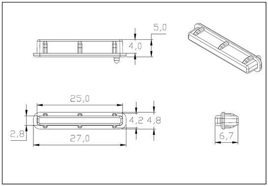 This cover is suitable for the "standard port" style SD Card with a port width of 25mm.
